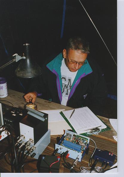 ARCI Fall QSO Party, 1997, Falls Lake, NCDerek, WF4I: Dave, WA4NID: Paul, AA4XX: John Paul, AB4PP, checks out the log during his night operation: Paul's, AA4XX, Sierra used during the ARCI Fall QSO Party (< 250mW output !!!) John Paul's, AB4PP (ex WA4IHO), Mercury Paddle used during the QSO Party: Paul's, AA4XX, Schurr Wabbler paddle used during the QSO Party