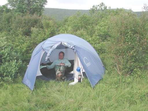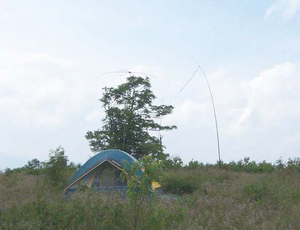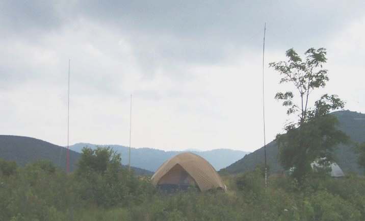 Greg/KF4BWQ tent site with 15m Beam and Invereted V in background