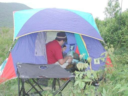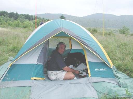 Derek/WF4I in his tent working 15 CW hard and heavy!