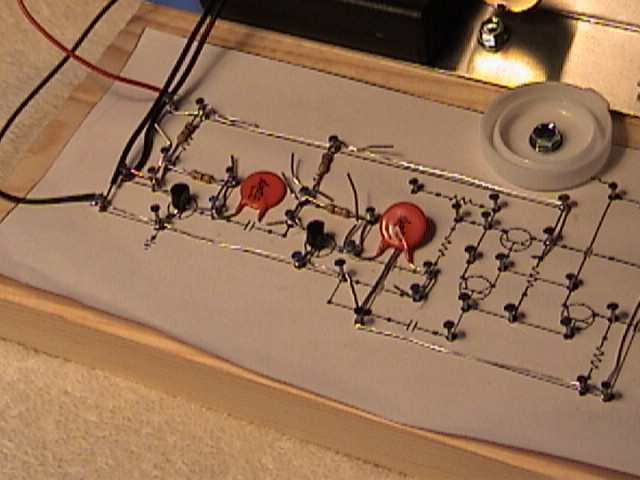 on a wooden base, aptly chosen to simulate true "breadboard"
