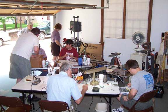 Sir Todd (AG4AY)rechecking his plans, with Sir Bob (AE4IC) charging ahead.